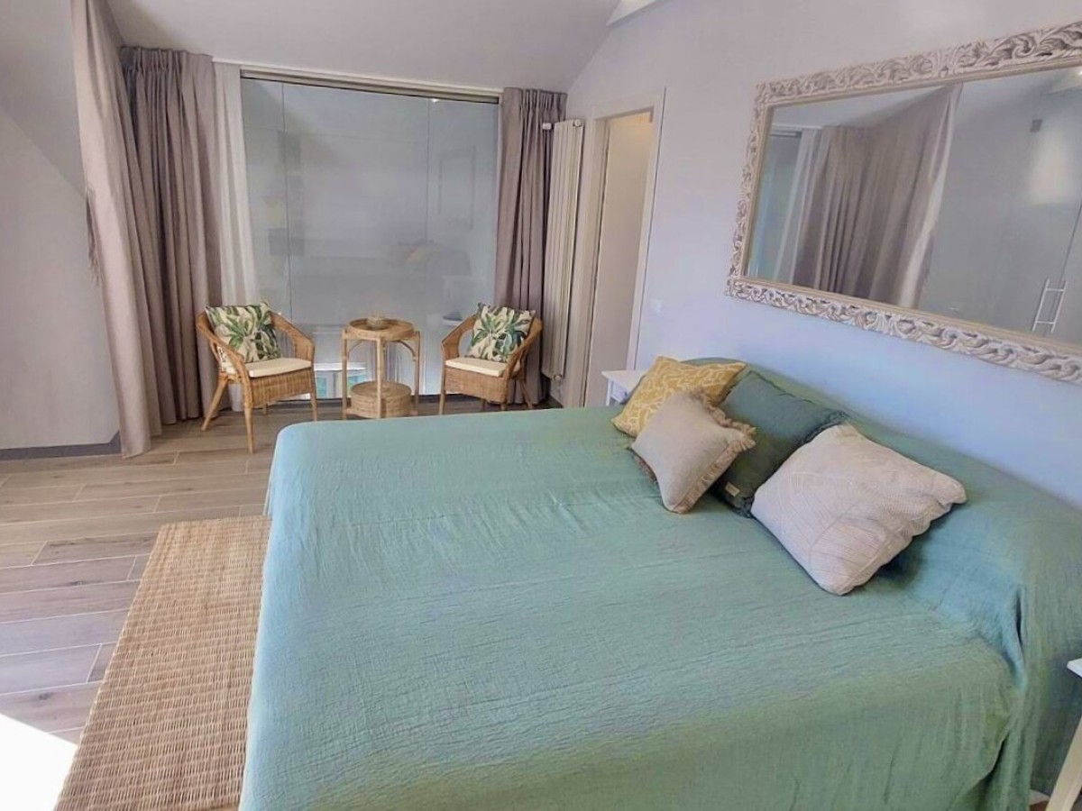 2й этаж: спальня с двуспальной кроватью и собственной ванной комнатой. Балкон и кладовая.